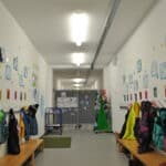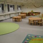 Unsere Einrichtung befindet sich derzeit, übergangsweise, in einem Containerbau. Im Erbgeschoss finden vier Krippengruppen ihren Platz, sowie sanitäre Anlagen, das Büro und der Elternbereich. Der Flur dient bei schlechten Wetter, ausgestattet mit einer Rutsche und vielen Bobbycars, als Ort zum Toben und Rennen.