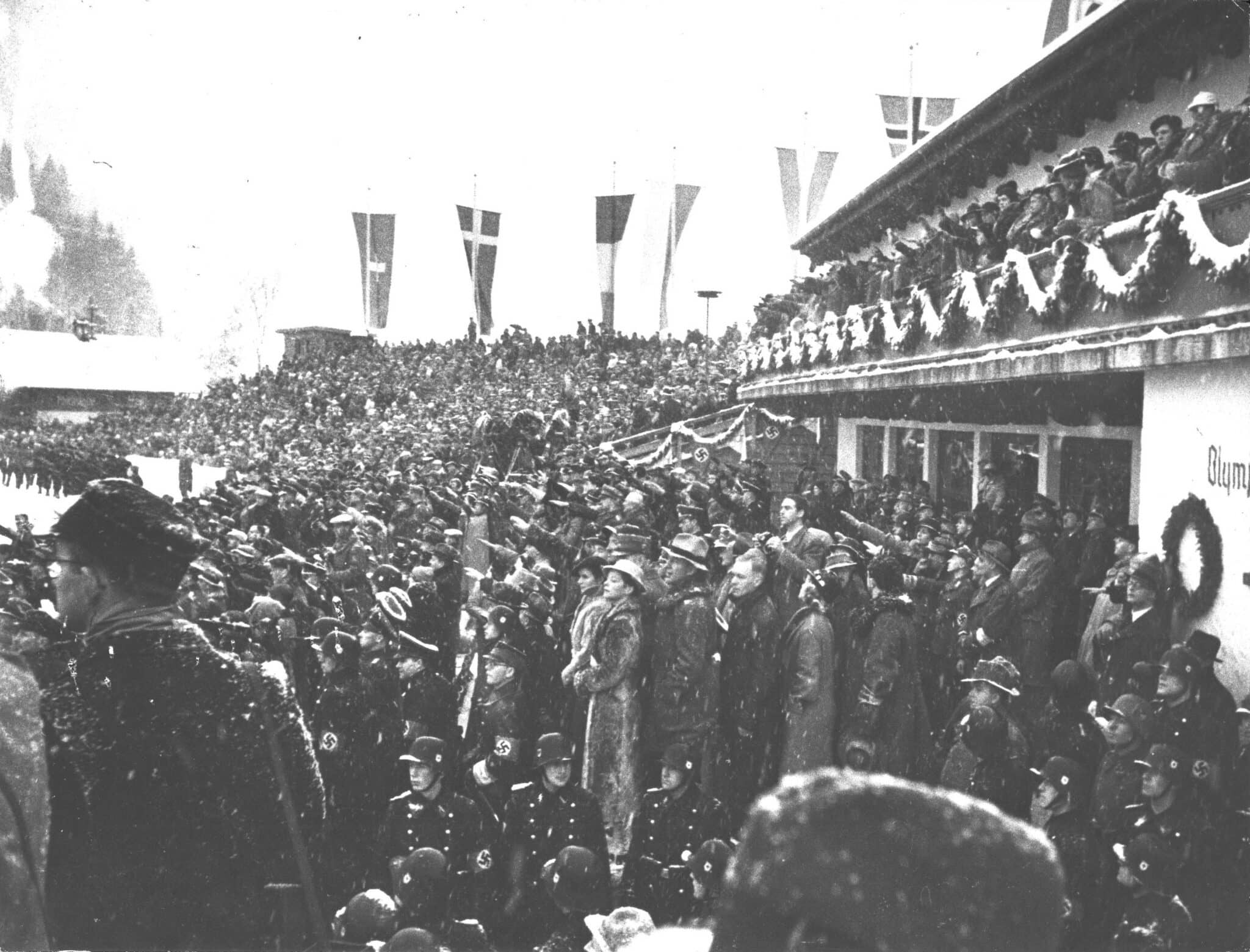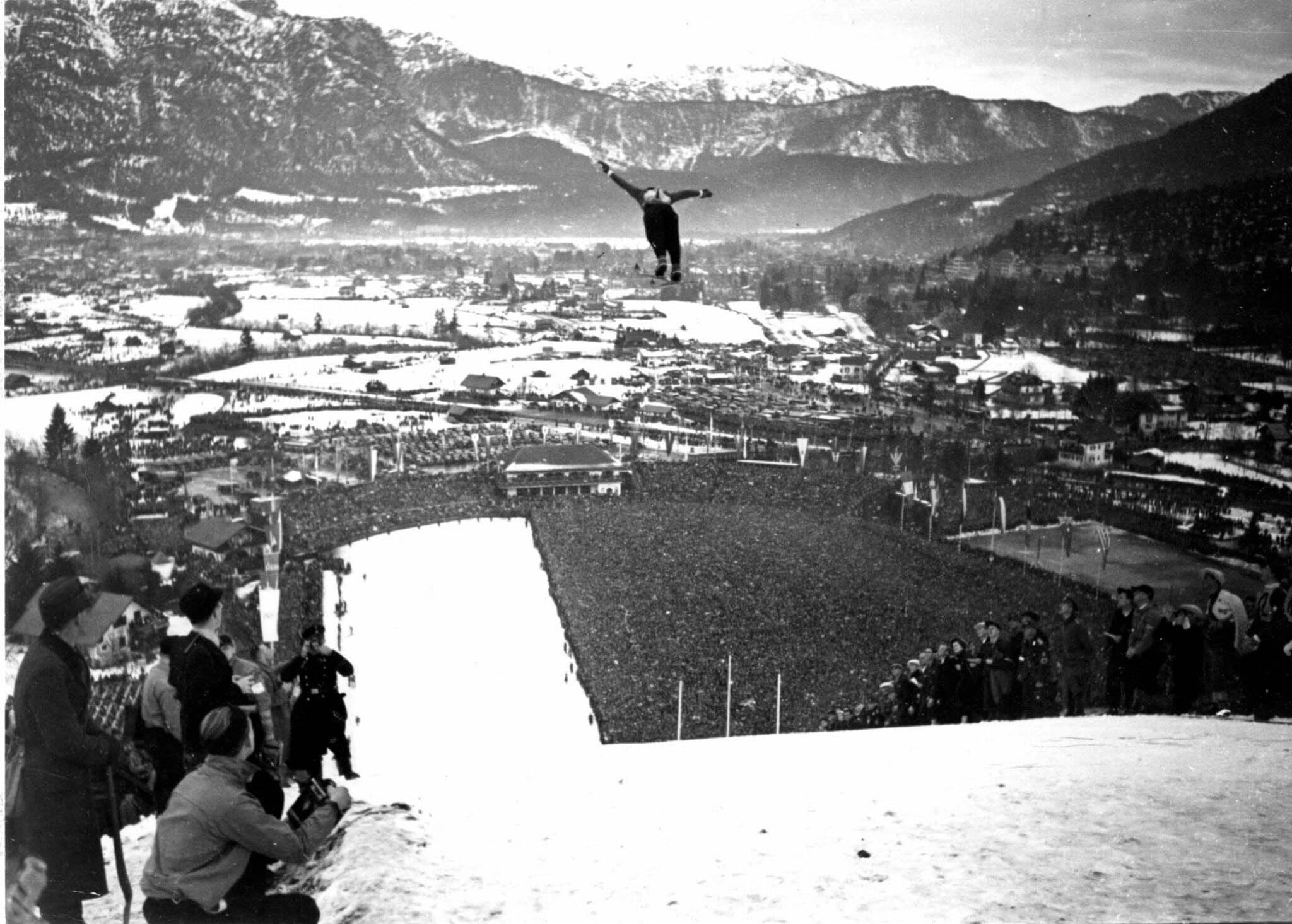 Während an der Eröffnungsfeier am 6.2.1936 „nur“ 20.000 Menschen teil-nahmen, zog der Spezialsprunglauf – also das Skispringen – am letzten Tag der Spiele circa 130.000 Zuschauerinnen und Zuschauer an. Am selben Tag endeten die Olympischen Winterspiele 1936 mit der Siegerehrung und der Schlusszeremonie im Olympia-Skistadion.
