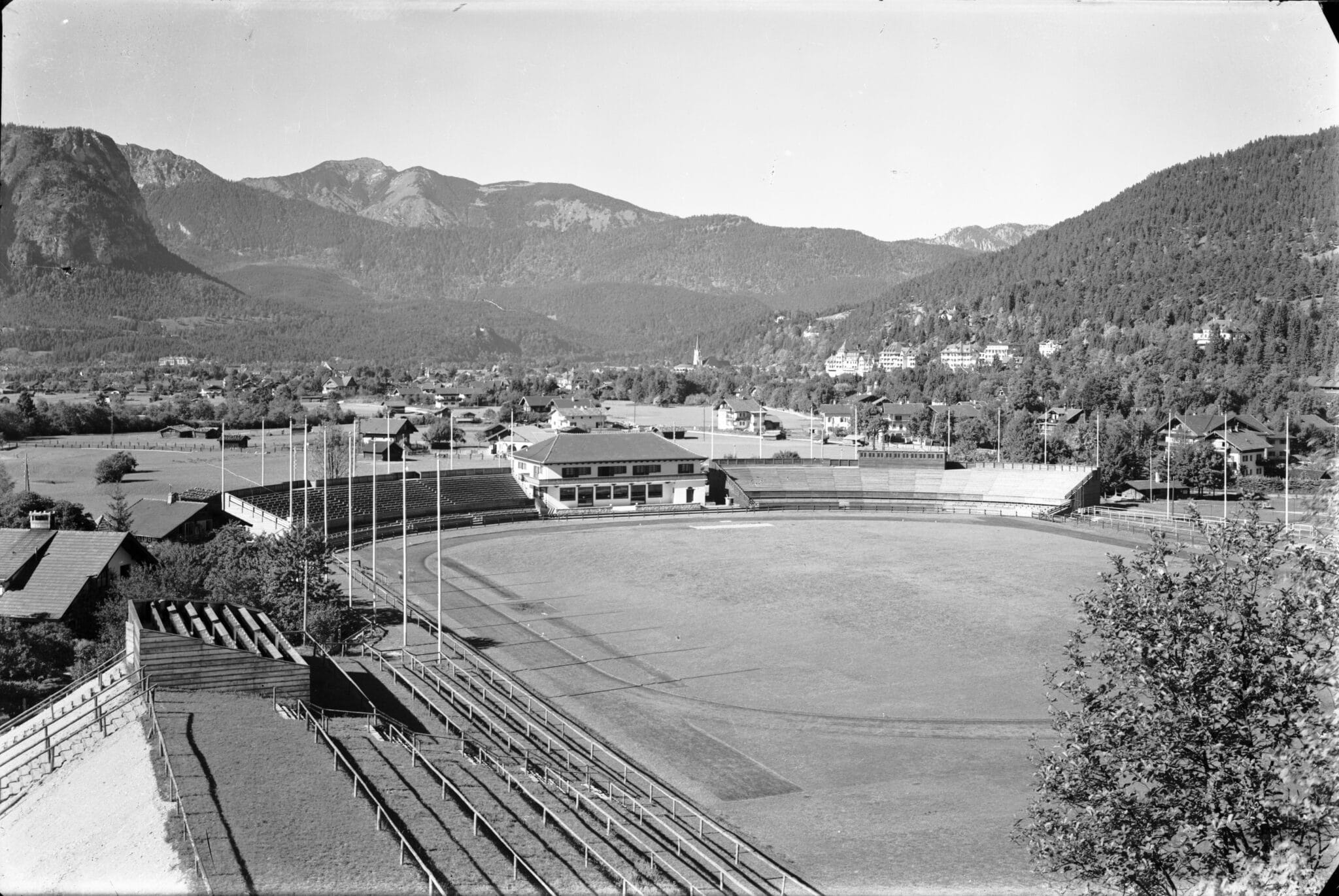 The horseshoe-shaped grandstands made of concrete and stone, which can still be seen today, were not built until preparations for the planned 1940 Winter Olympic Games. In September of that year, 40 French prisoners of war were forced to carry out securing and repair work at the expanded Olympic Ski Stadium.